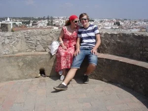 On Friday we headed over the bridge into Portugal to visit the lovely town of Tavira. After lunch and exploring the castle we headed to the nearby spit of land Barills beach at Pedra del Rai where Mark and I had stayed in 2006. A little train takes beachgoers across the saltwater and marshes to a golden beach and cluster of cafes. Dan and I took a pedalo out which was fun and only a tad scary.